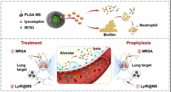 溶葡萄球菌酶(lysostaphin)是一种内生肽酶,能特异性酶切葡萄球菌细胞壁中的交联多甘氨酸桥,在体内及体外显示出对葡萄球菌包括MRSA菌株的杀菌能力,同时也可以有效的破坏生物膜,是一种非常有潜力的抗菌药物。目前溶葡球菌酶已被成功研究报道用于骨骼感染,角膜炎,皮肤感染等疾病模型,但是不同于角膜,皮肤等相对较为浅表的器官,处于深部的肺脏器,通过静脉途径给药后,溶葡球菌酶在肺内的有效浓度较低,难以达到治疗效果。针对以上问题,近期,浙江大学转化医学研究院周民研究员课题组、新加坡国立大学陈小元教授课题组和日韩欧美福利视频_黑人巨大人精品欧美三区_欧美成人另类人妖_欧美在线精品一区二区三区_欧美一区二区三区性视频_日韩精品欧美视频_性欧美极品xxxx欧美一区二区附属第二医院徐峰教授课题组联合在国际知名期刊ACS Nano上发表文章Lung Targeting Lysostaphin Microspheres for Methicillin-Resistant Staphylococcus aureus Pneumonia Treatment and Prevention”(IF:15.881)。