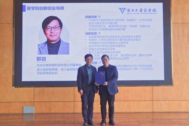 随后进行医学院创新创业导师聘任仪式。由李晓明教授分别为郭羽、陆晓红、王承超三位老师颁发聘书。